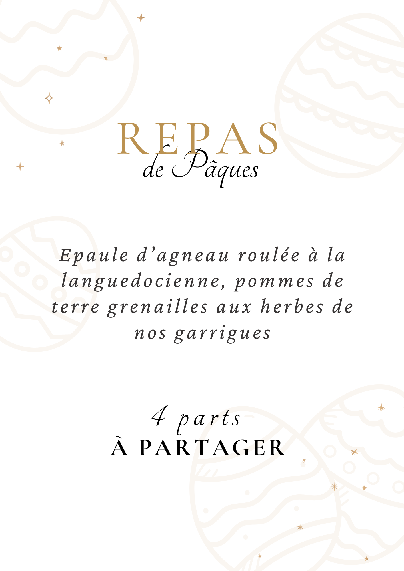 Pour le week-end Pascal, laissez-vous tenter par notre suggestion spécialement élaboré par notre Chef